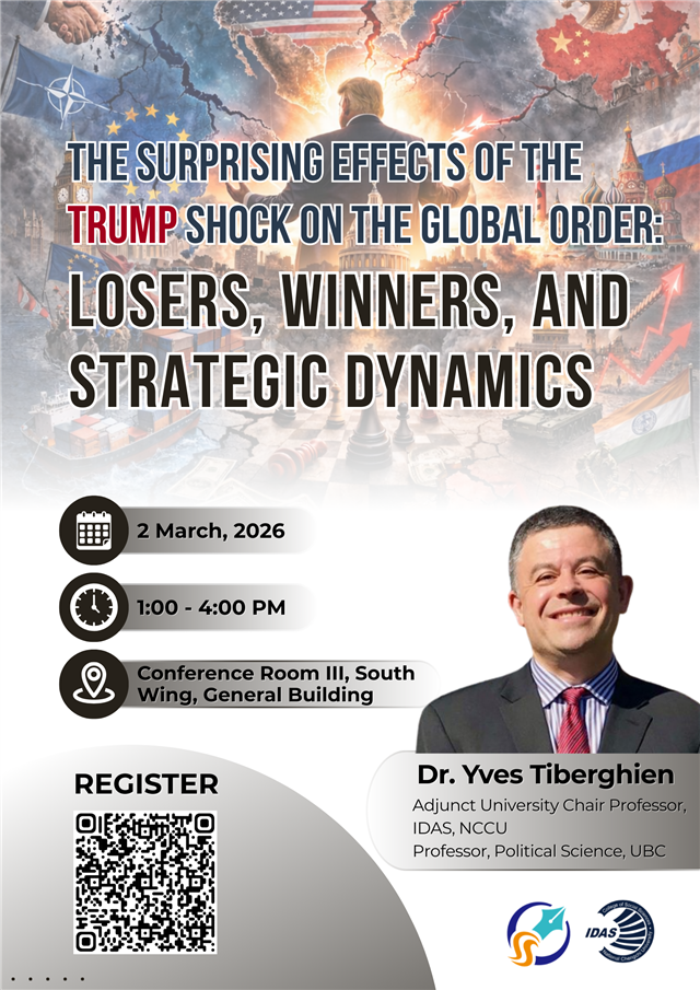 Speaker: Dr. Yves Tiberghien, Adjunct University Chair Professor, IDAS, NCCU; Professor, Political Science, UBC |